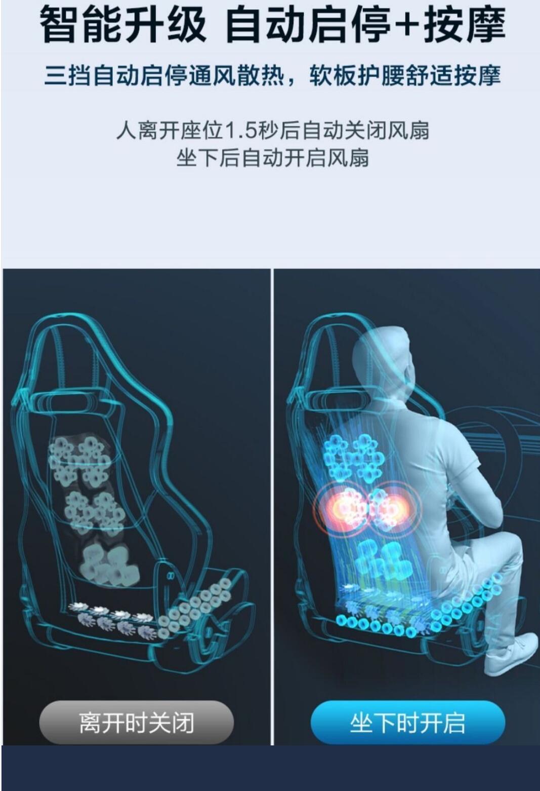 三挡自动启停通风散热,软板护腰舒适按摩。