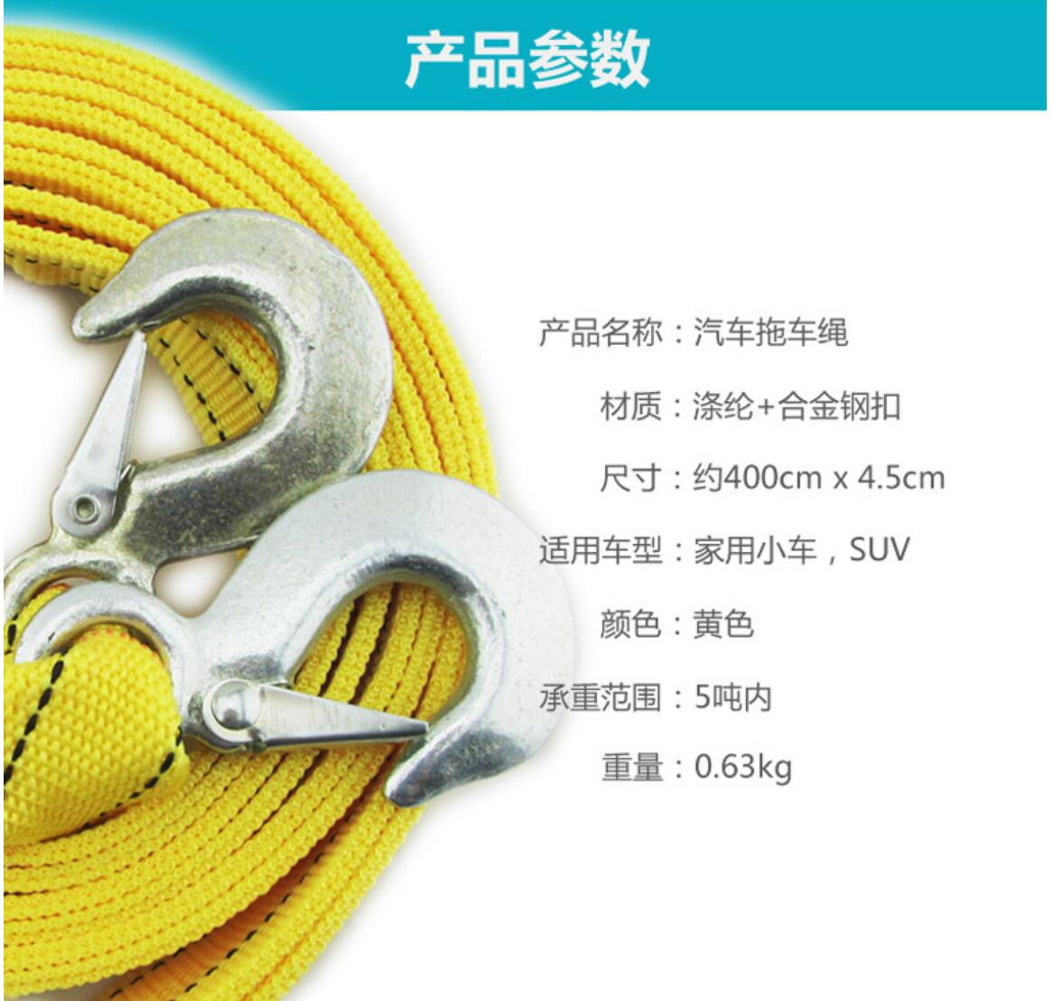 强力汽车拖车绳拖车带 汽车用品5吨牵引绳 车用拖车绳